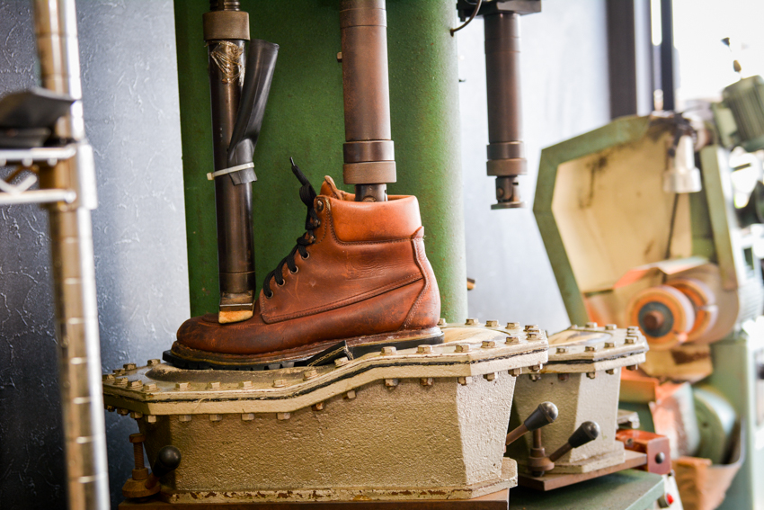 Jリペアではガエルネのブーツに最も適した修理を行うため、イタリアの工場で使っている機械を日本に持ち込んでいます。