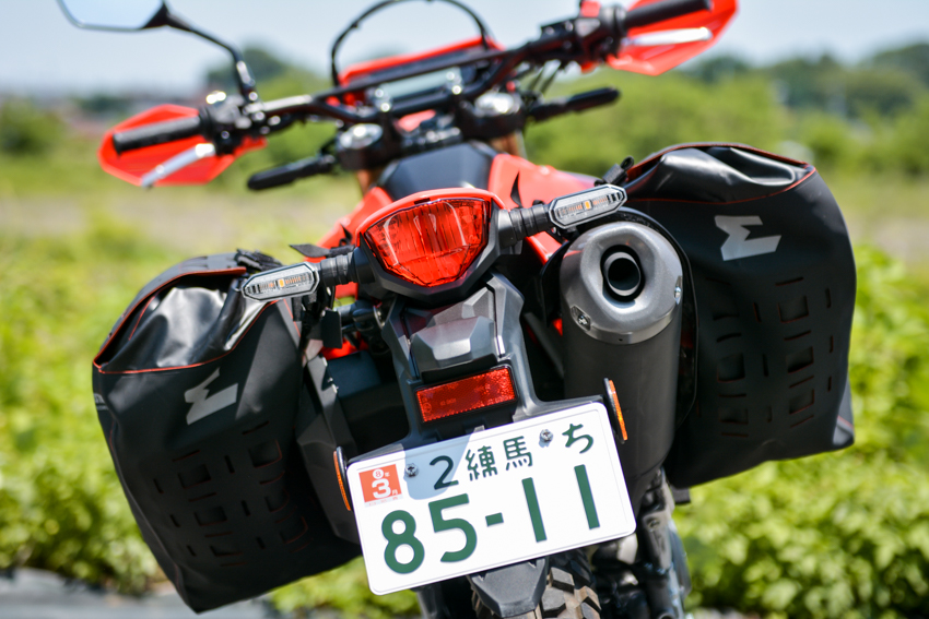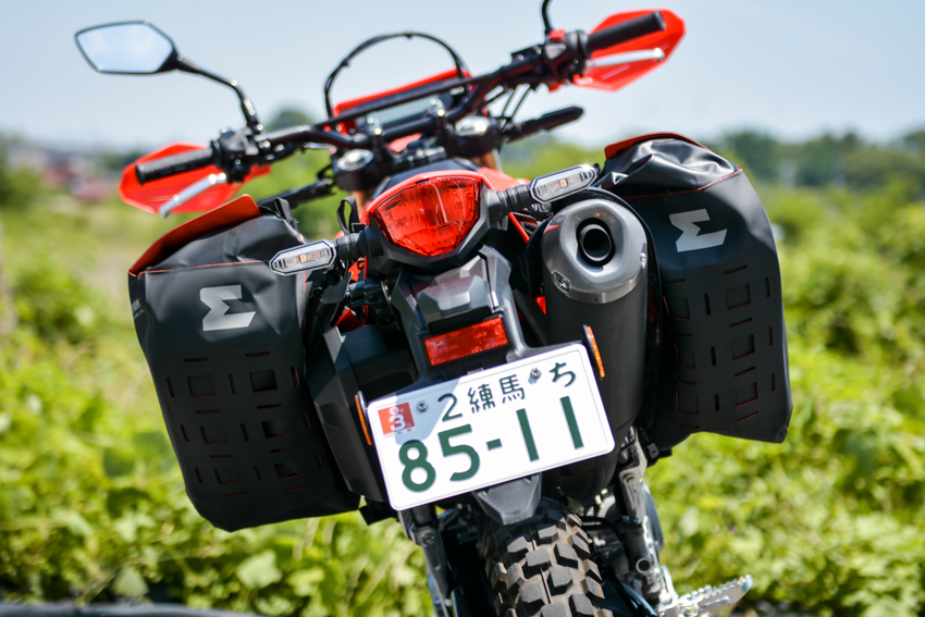 今回取り付けているHONDA CRF250Lのような250ccクラスのオフロードバイクにはピッタリのサイズ感。