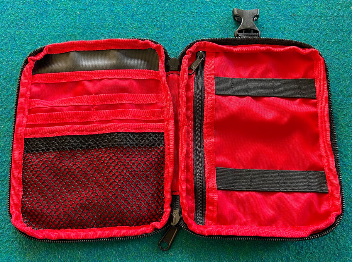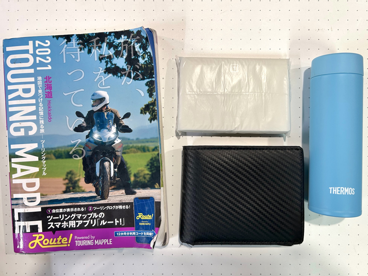 メインスペースは内部がレッドコーティングされているので荷物が探しやすく「ツーリングマップル、財布、ティッシュ、小型ドリンクボトル」くらいなら問題なく入ります。