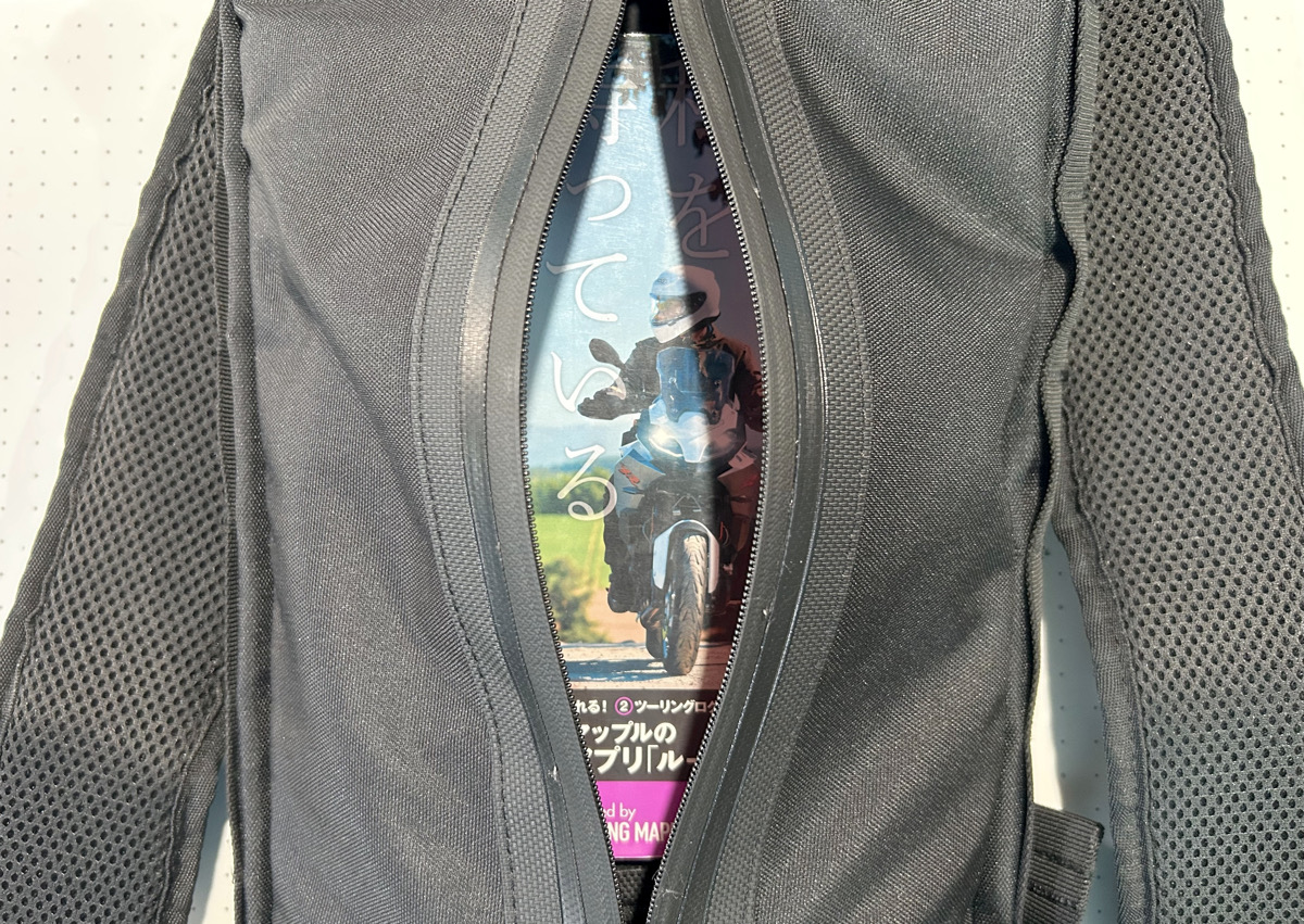 しかも見た目以上に収納力があるので、日帰りツーリングでも十分役立つマルチなバックパックです。