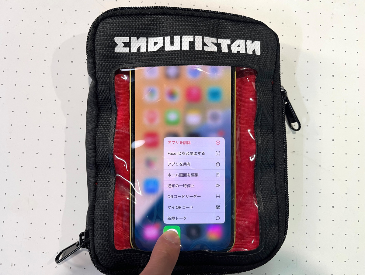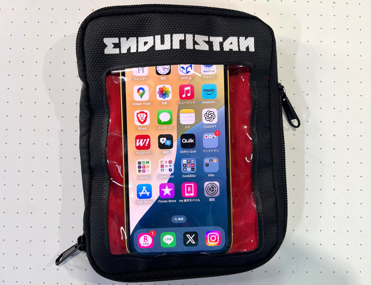 しかもスマホは透明なスクリーンのある場所に収納すれば、わざわざポーチから取り出すことなく「そのままタッチ操作が可能」という優秀っぷりです(写真撮影時は取り出す必要あり)