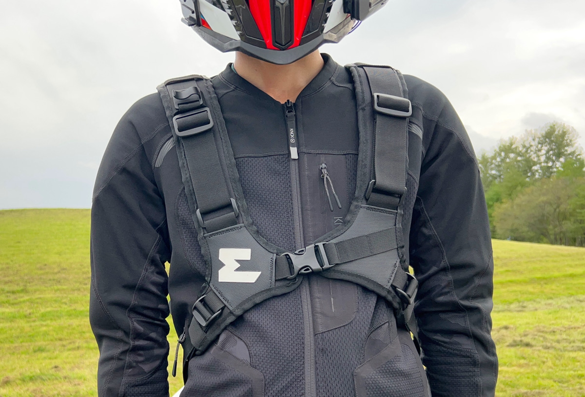 そして、やはりチェストベルトではなくショルダーベルトを連結させているフィット感はかなりのもので、オフロード走行時のライダーの3Dな動きを一切邪魔せずピタッと背中に張り付いてくれます。