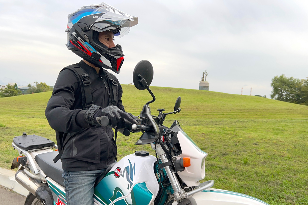 オフロード走行では腕を前後に動かすことが多々ありますが、仮にバッグの横幅が広いとそれを妨げることになるので…だからこその「縦長 甲羅スタイル」なんです!