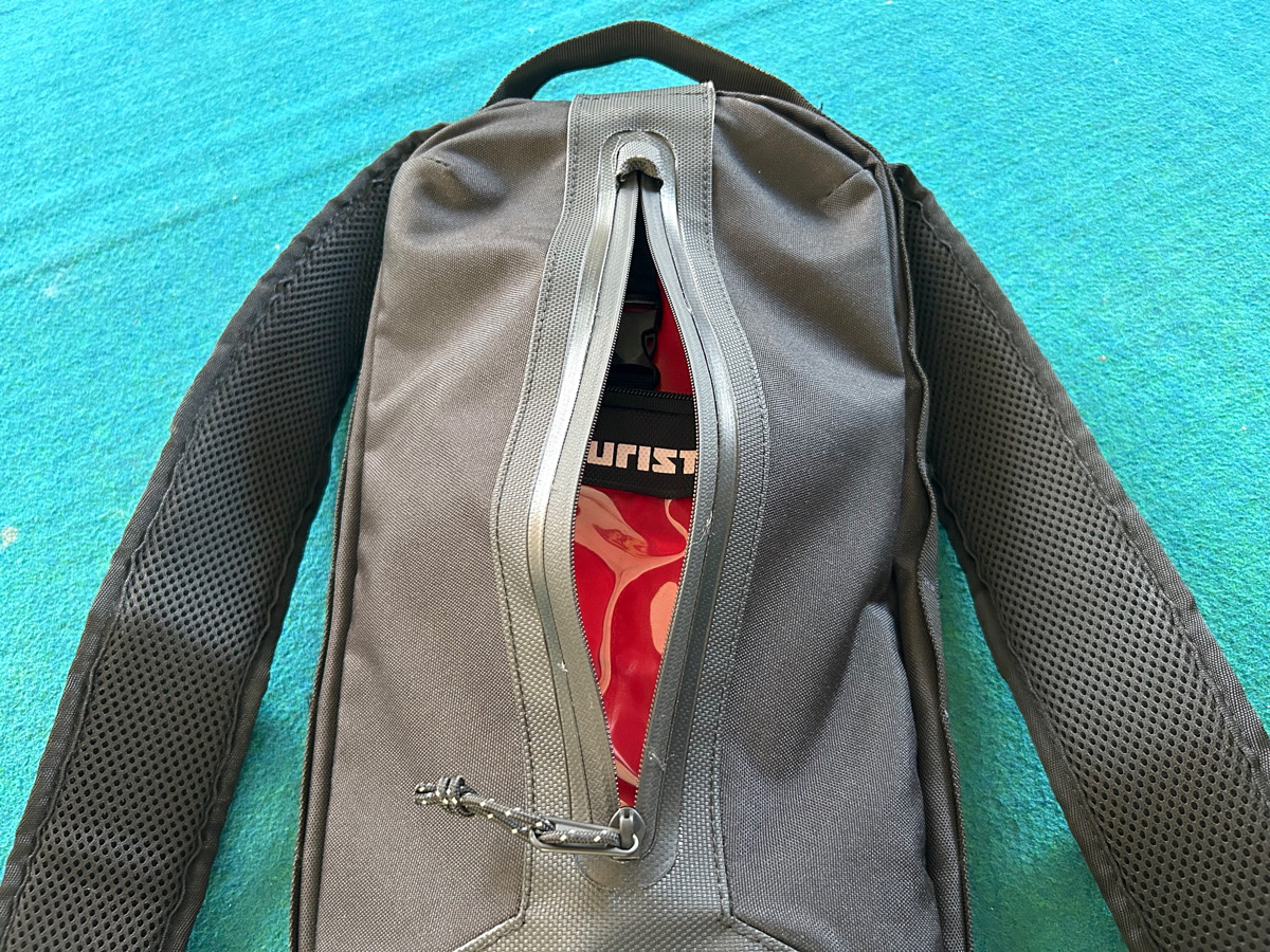 そしてそして最後に余談 of 余談ですが…実はバッグの上部に「H2O」と記された謎の収納スペースがあるのですが…これはエンデューロレースなどで使用する「ハイドロパック(給水パック)」を収納するスペースです。