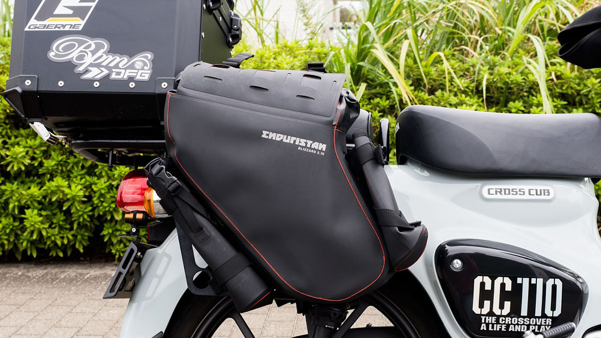 ブリザード2シリーズはオフロードバイク用に開発されていますが、サドルバッグサポートがあれば装着できます。