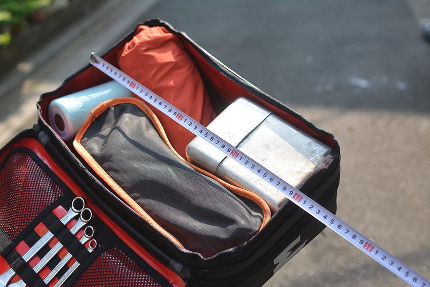 工具だけでなくキャンプ小物や紙類なども入るので、ツーリングで重宝しそうです。